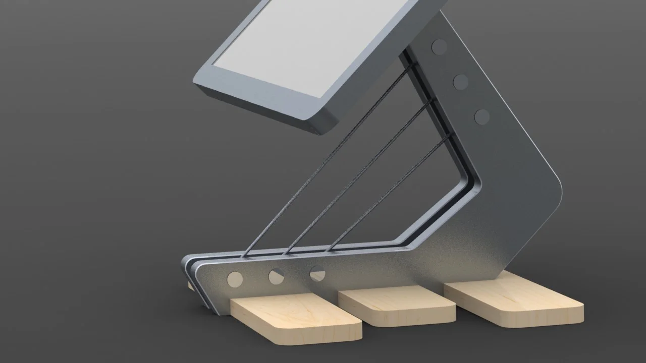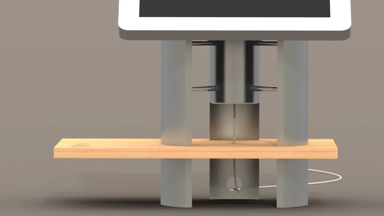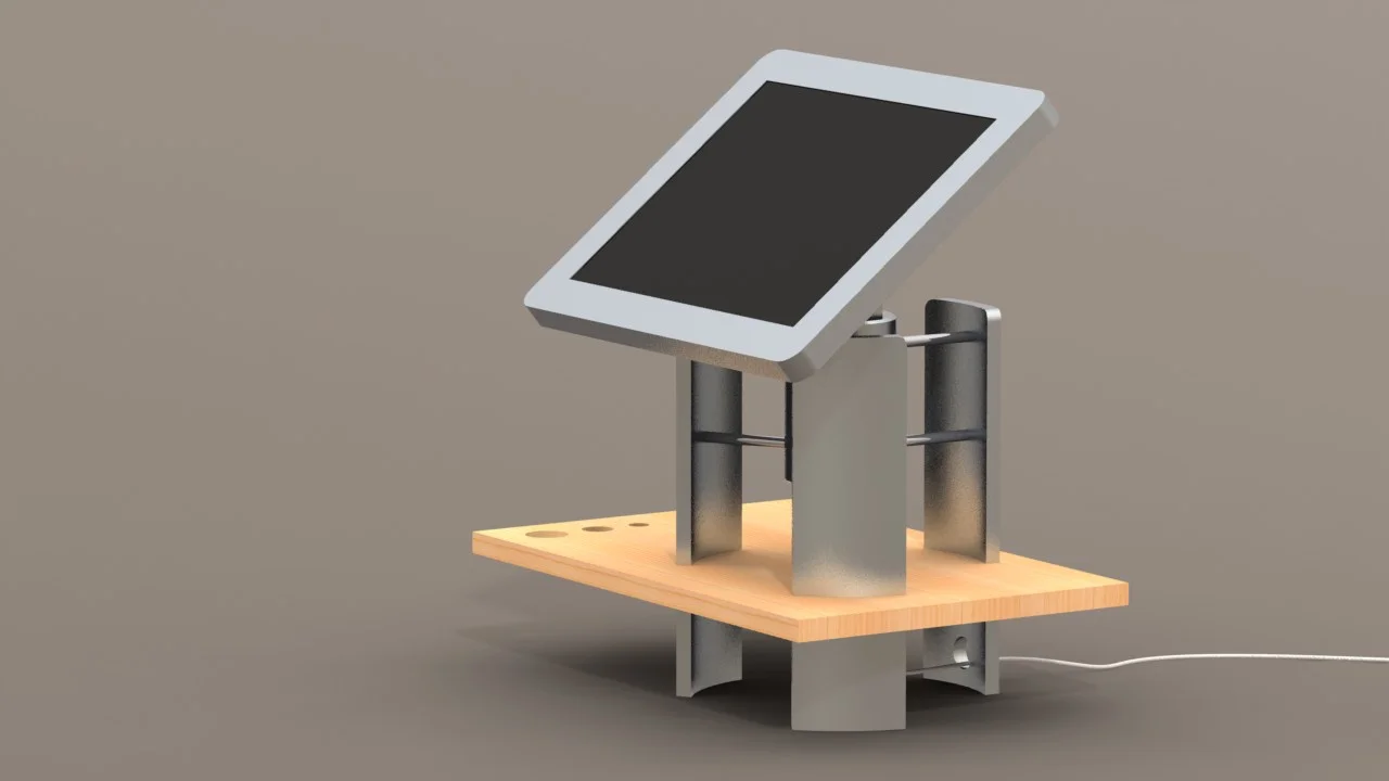 The Heckler Killer is a conceptual tablet mount intended for use as a point-of-purchase system. It is designed for use with two tablets (one large and one small) as an interface between clerk and customer. It was designed for sheet metal fabrication. Unfortunately, this design didn't make it beyond prototyping as the cost of manufacturing in the United States is prohibitively expensive.